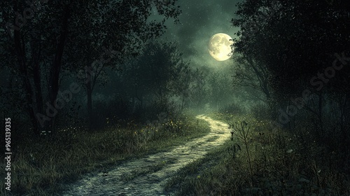 A moonlit path in a forest, leading to nowhere, aimlessness, lost in life’s journey