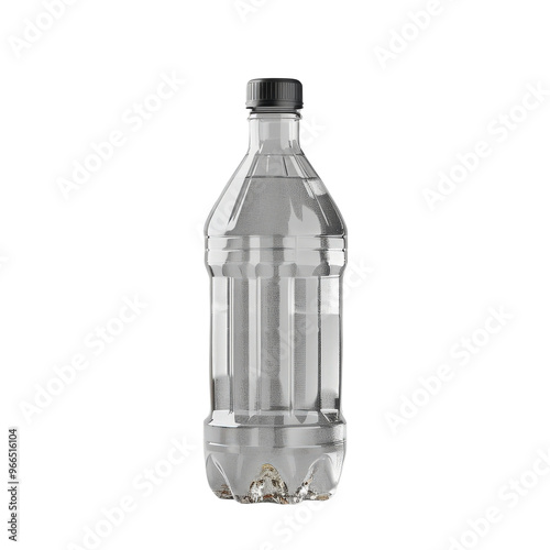 Clear plastic bottle with black cap, suitable for various beverages and liquids. Isolated on white background, ideal for packaging design.
