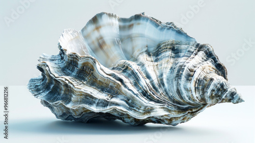 A detailed 4K image of an oyster, showcasing intricate textures under natural light and shadow. The realistic depiction highlights its organic beauty and gourmet appeal. AI generative