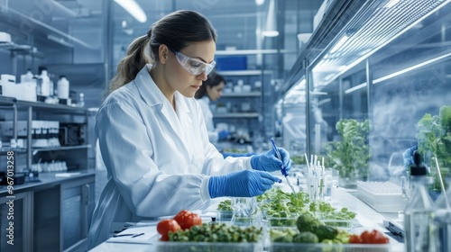 A Female Scientist in a High-Security Lab Carefully Examines Food Samples for Potential Toxic Substances, Ensuring Food Safety and Quality Control.