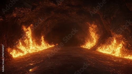 This illustration depicts a sci-fi futuristic asphalt tunnel corridor with neon glowing arcs, creating an underground atmosphere.