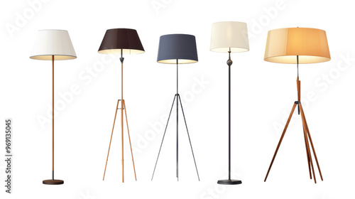 Set of stylish floor lamps, isolated on transparent background, modern home lighting collection