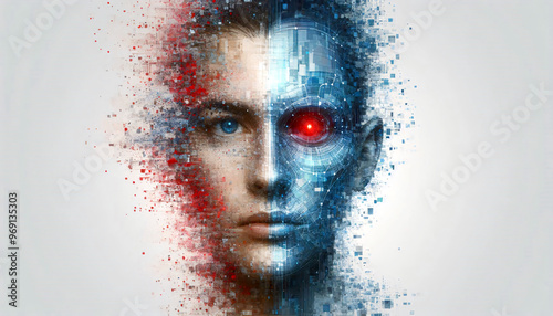 Hacker mit künstlicher Intelligenz jonglieren illegal mit Daten und verschleiern ihre Identität im Netz. Konzept der Cyberkriminalität im Bereich der digitalen Sicherheit