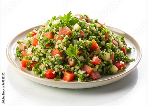 Traditional Arabic Salad Tabbouleh isolated on White Background