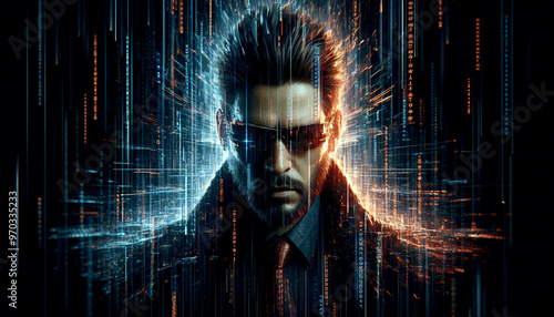 Hacker mit künstlicher Intelligenz jonglieren illegal mit Daten und verschleiern ihre Identität im Netz. Konzept der Cyberkriminalität im Bereich der digitalen Sicherheit