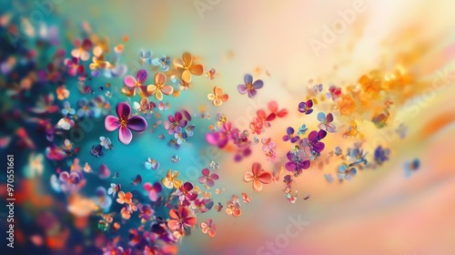 Delicate swirls of colorful tiny flowers, dancing across a dynamic pastel background, creating an intricate and vibrant visual flow