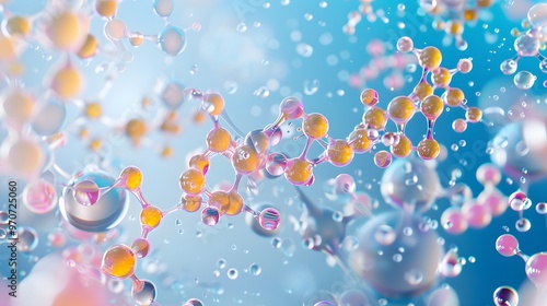 An enlarged view of a complex polymer blend, detailed molecular structure, smooth surface