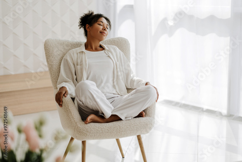 Young woman relaxing in armchair at home
