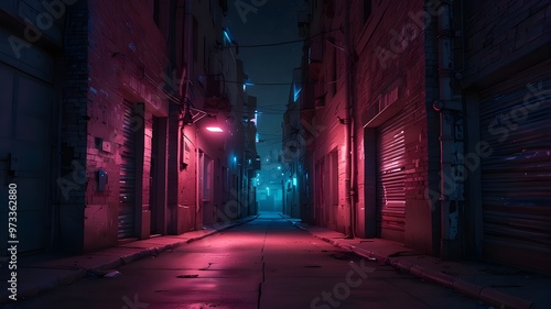 Neon lights in pink and blue on a city alley. city street in a neo-noir pink and blue design. neon lights in a pink and blue gradient, reminiscent of a cyberpunk alleyway. Artificial Intelligence