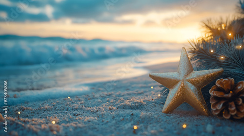 #1418864078Tropical summer sand beach and bokeh sun light on sea background. Generative AI