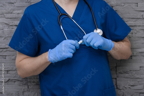 Lekarz kardiolog w niebieskim kitlu operacyjnym