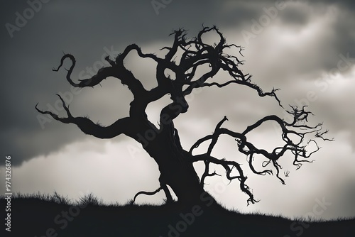 Spooky trees filled with shadowy tree silhouettes with strange shapes, AI Generated