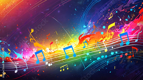 A symphony of musical notes dances in a colorful background
