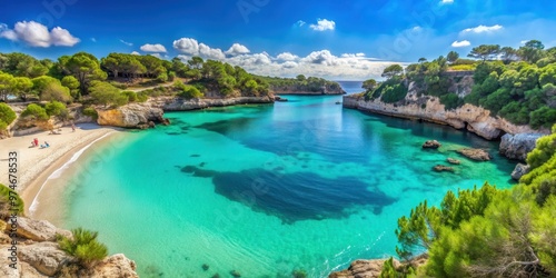 Beautiful beach Cala Marcal with turquoise waters and golden sand in Portocolom resort, Mallorca, Spain, beach