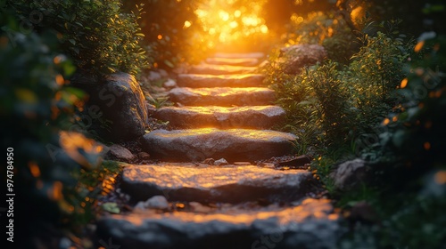 A spiritual ladder to success, with steps symbolizing mindfulness, inner peace, and personal fulfillment, representing a journey of self-discovery.