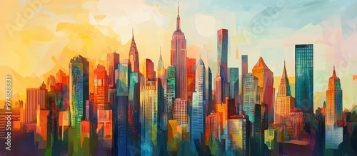 Painting depicting a vibrant city that serves as a major hub for economics culture and politics in its country