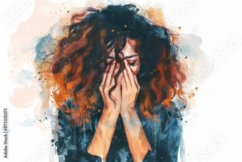 Facepalm woman drawing, disappointment guy sketch, sad covering face with hands, isolated