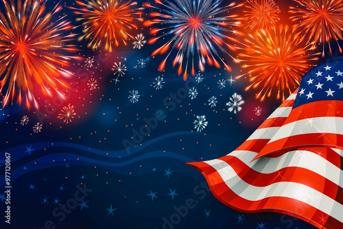 USA 4th of july independence day design of american flag with fireworks vector illustration