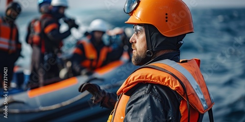 Professional coast guard conducting rescue operations on a boat in rough waters during daylight hours