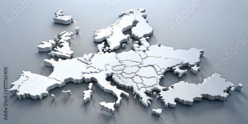 3D Rendering of Europe Map, White, Silver , Minimalist , map, european, continent