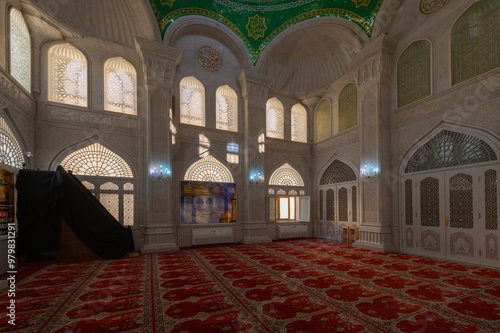Bibi Heybat odbudowany meczet w Baku w Azerbejdżanie. Wnętrze meczetu Bibi Heybat