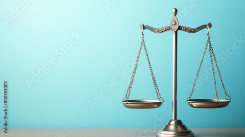 Libra negotiator, balanced scales, soft blue tones, harmonious interaction, fair judgment