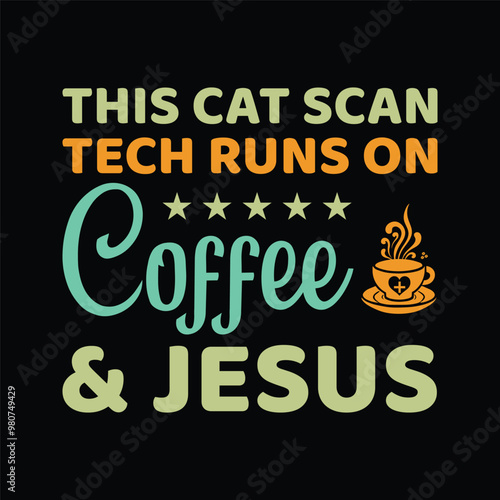 This Cat Scan Tech Runs On Coffee & Jesus - Coffee Lover Typography T-shirt Design Vector