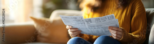 Candid Capture of a Person Reviewing Bank Statements at Home - Realistic Savings and Financial Management Concept with Natural Lighting for Financial Planning Ads