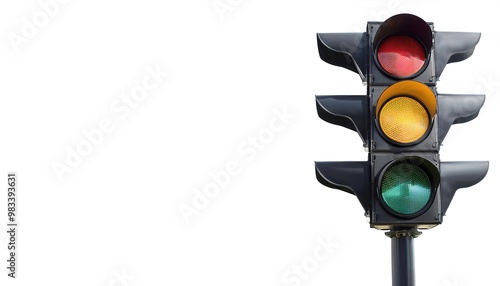 Traffic lights, signals, or stoplights – also known as robots are signaling devices positioned at road intersections, pedestrian crossings, and other locations to direct traffic. Isolated on white
