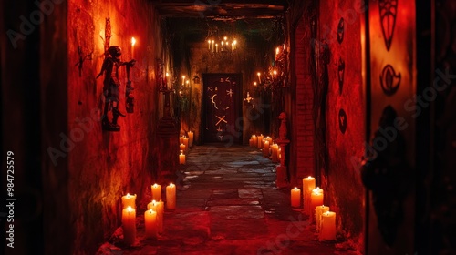Mysterious New Orleans-style alleyway with candles and voodoo symbols for haunting Halloween atmosphere
