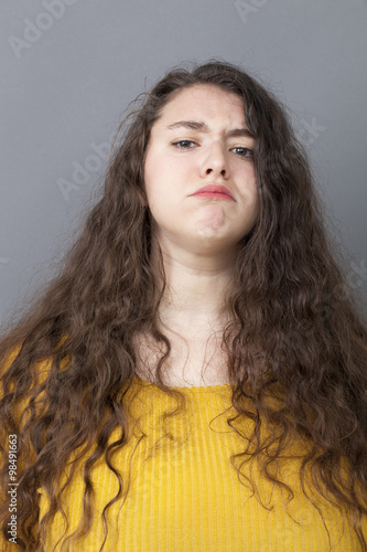 pride and arrogance - offended big young woman with long hair exasperated by critics,grumbling and threatening to express her attitude