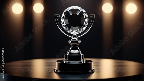 3D render illustration of a blank transparent crystal trophy for mock up.