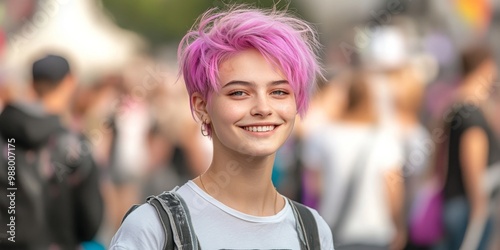 Generative AI Portrait of Non-Binary Person with Bright Pink Hair | LGBT Pride and Diversity Celebration Concept
