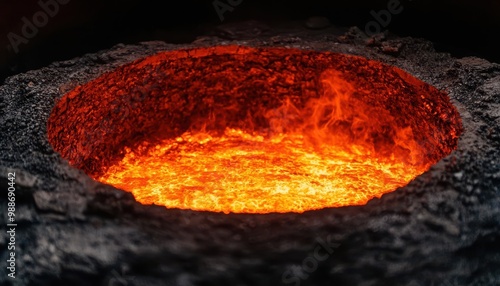 A massive furnace glowing red-hot with molten metal, industrial background, Furnace, Metallurgy, Heat Intensity