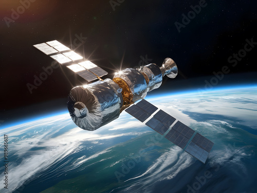 Satélite espacial orbitando con gracia la Tierra por encima de la atmósfera