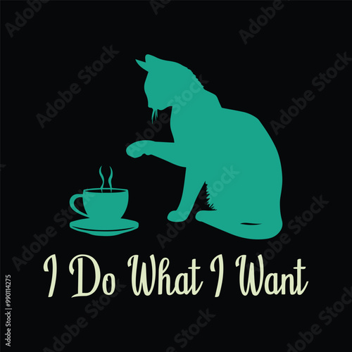 Cat Do What I Want Tea Coffee - Coffee Lover Typography T-shirt Design Vector