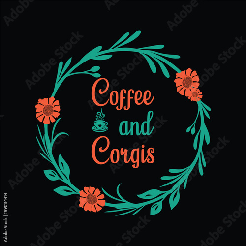 Coffee and Corgis - Coffee Lover Typography T-shirt Design Vector