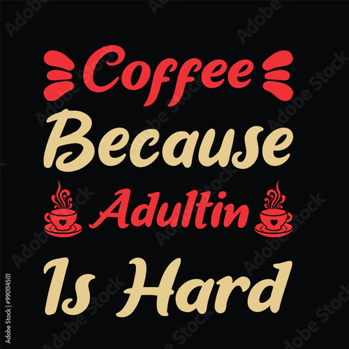 Coffee Because Adulting Is Hard - Coffee Lover Typography T-shirt Design Vector