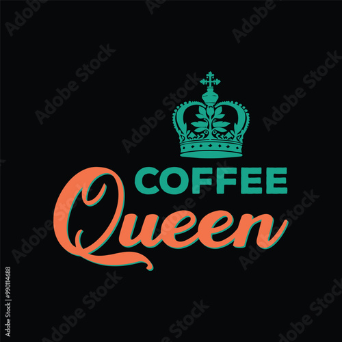 Coffee Queen - Coffee Lover Typography T-shirt Design Vector