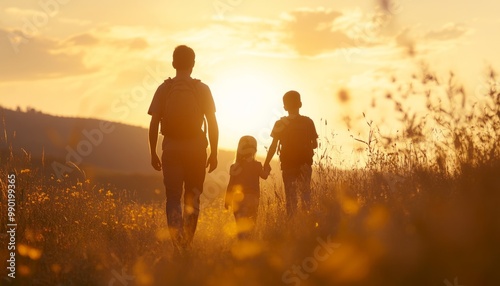Sunset Stroll in the Fields: Silhouettes in Golden Light