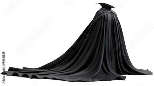 A flowing black cloak ripples as if caught in a breeze, draped in mystery and elegance.