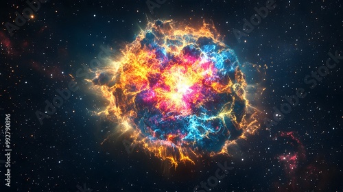 4. A vibrant supernova explosion, radiating brilliant colors and energy against a backdrop of starry darkness