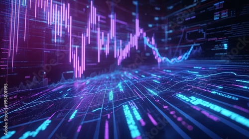 Abstract digital data visualization with vibrant colors and glowing graphs, representing modern analytics and market trends.