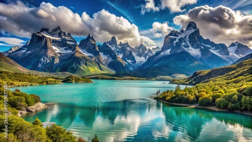 Picturesque Turquoise Waters Of Lago Nordenskjold Surrounded By Towering Granite Peaks And Lush Forests In Torres Del Paine National Park
