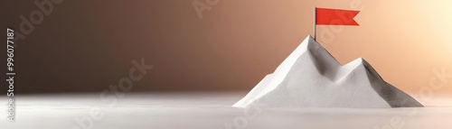 Lowpoly peak and flag of success, illuminating the path to conquering tech challenges