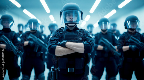 Police force in protective gear ready for action