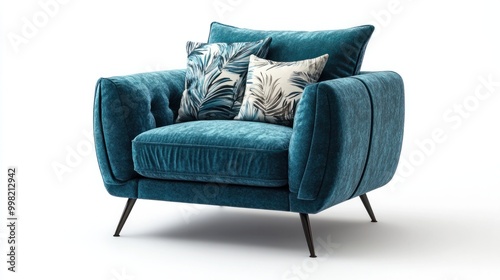A cozy bedroom armchair with a decorative pillow, isolated on a white background