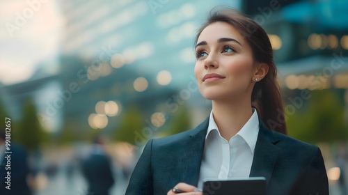 młoda kobieta, profesjonalna, biznes, skrzyżowane ręce, pewność siebie, biuro, nowoczesne, smart-casual, korporacyjny, oświetlenie naturalne, elegancka, technologia, komputery, biurka, współczesne biu