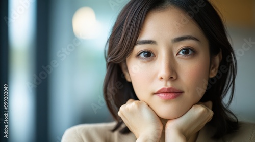 物思いにふける日本のビジネスウーマンが春のインスピレーションを振り返る