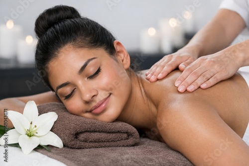 Relaxing massage therapy session with flower spa."" Ai generative